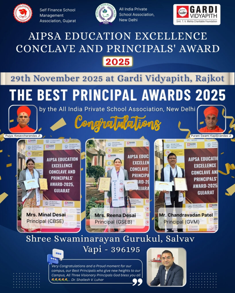 Today’s education system faces a greater challenge in terms of imparting the right knowledge and the apt experience that blends to create wonderful, young and successful students. We at SHREE SWAMINARAYAN SECONDARY AND HIGHER SECONDARY SCHOOL, SALVAV, VAPI provide every treasured child a platform to move with a positive mind full of confidence so that he grows up to become a strict disciplinarian and takes his country towards prosperity.